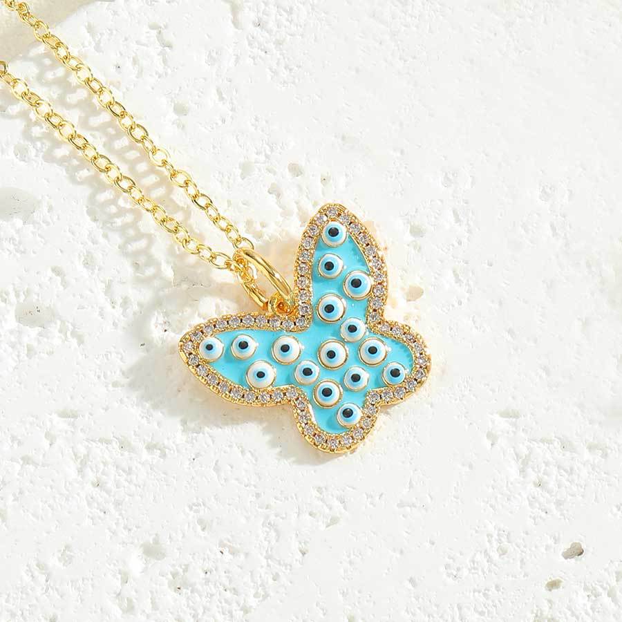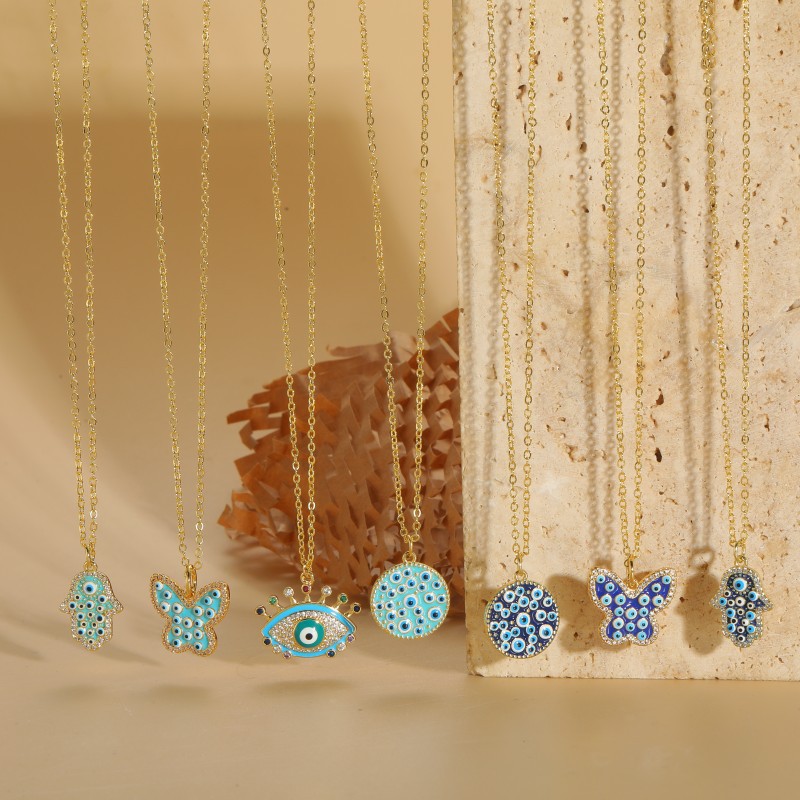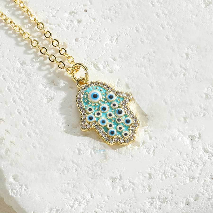 Cross-border special for oil-dropping devil's eye pendant clavicle chain independent station new bow palm design necklace for women