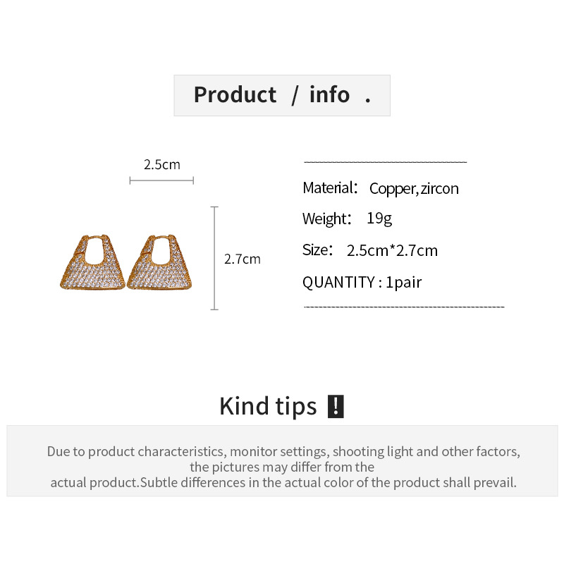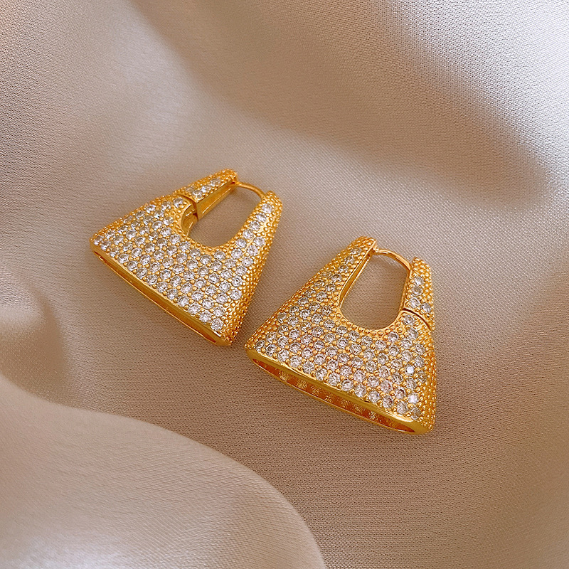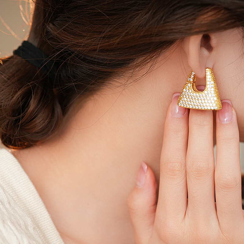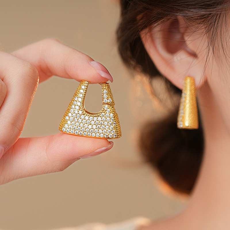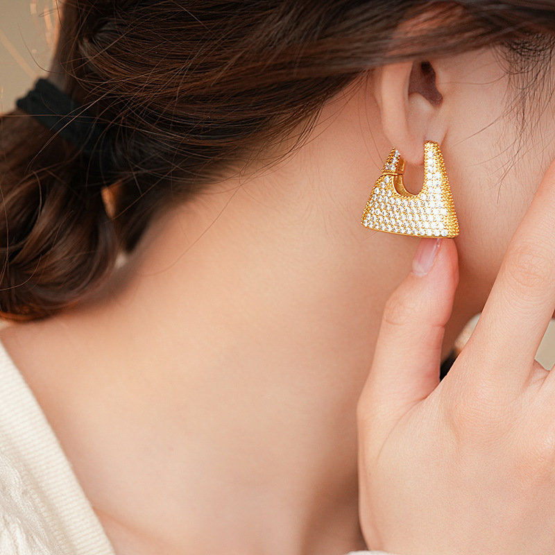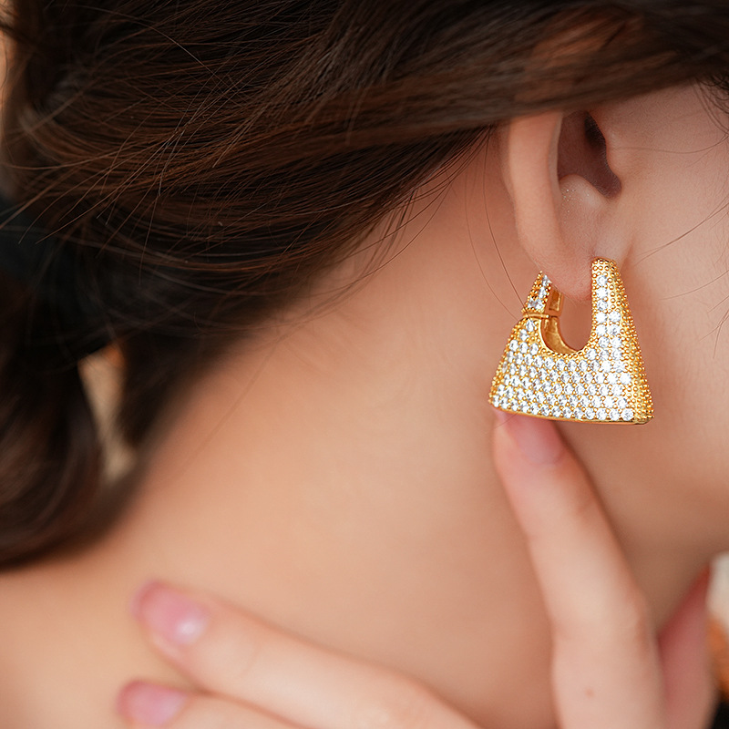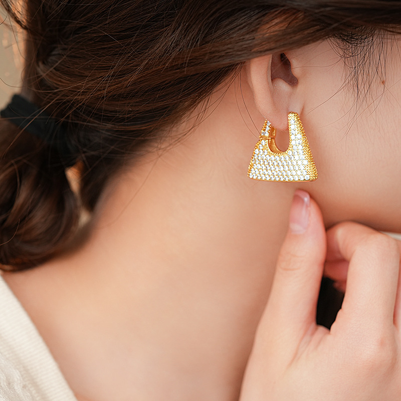 Fashionable trendy zircon handbag earrings personalized niche design ear buckle light luxury high-end ear decorations