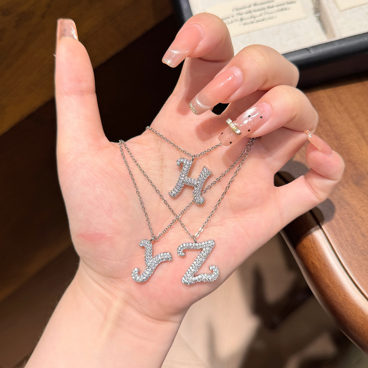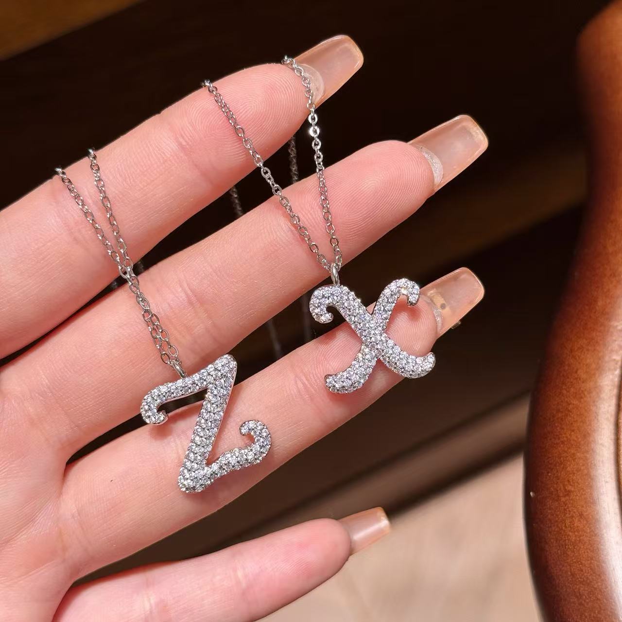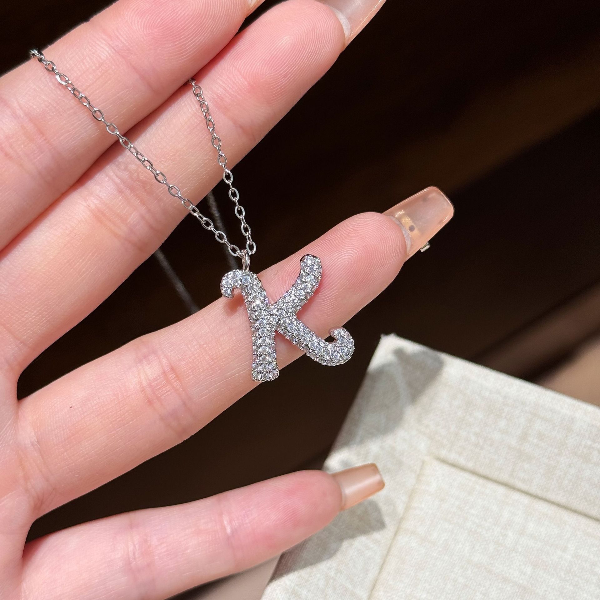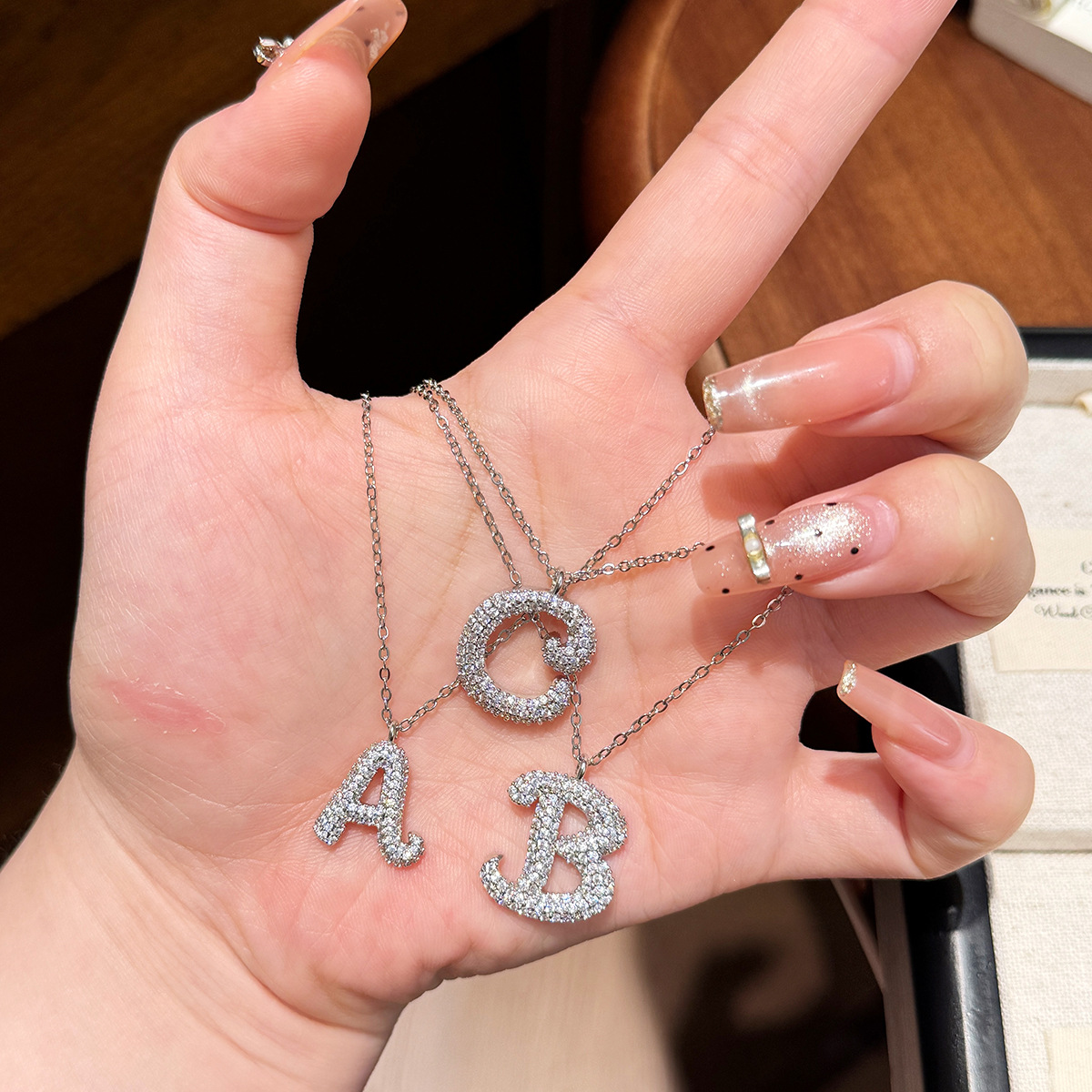 Original full diamond 26 letter necklace 2025 new light luxury fashion exquisite niche design clavicle chain jewelry