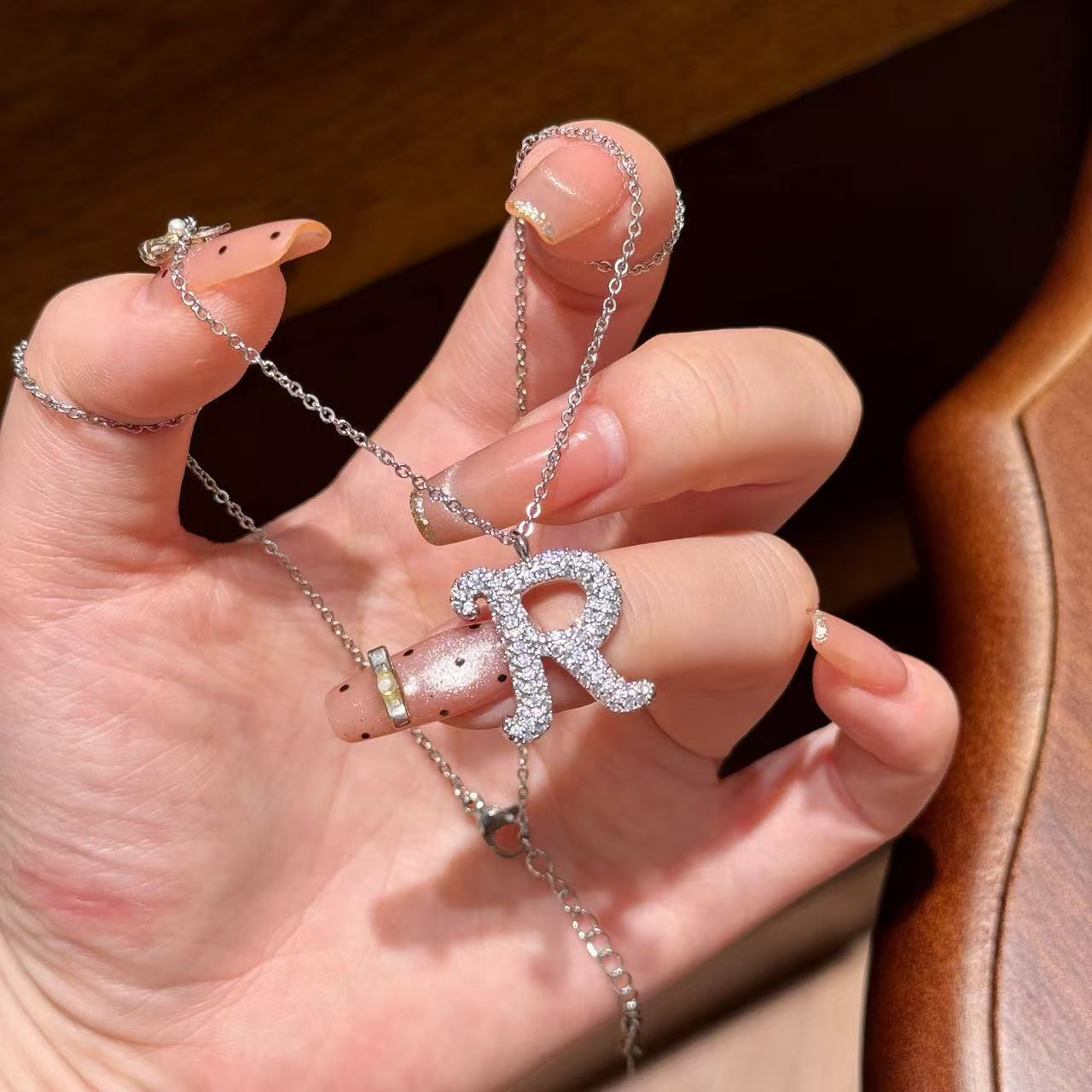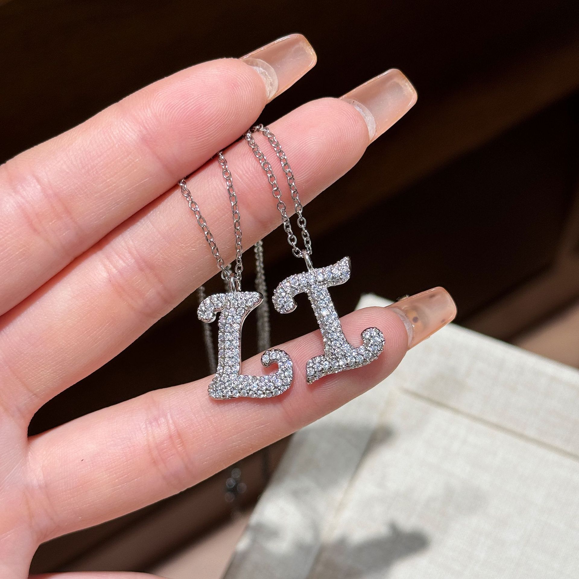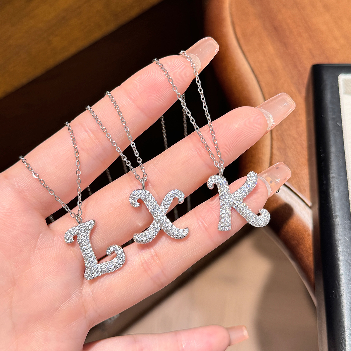 Original full diamond 26 letter necklace 2025 new light luxury fashion exquisite niche design clavicle chain jewelry