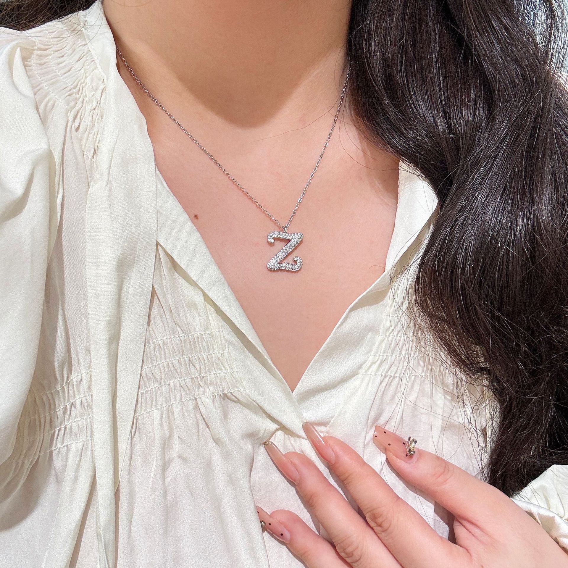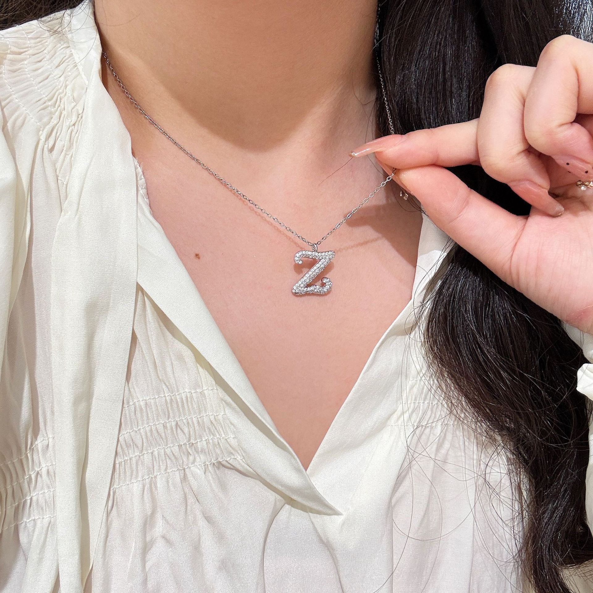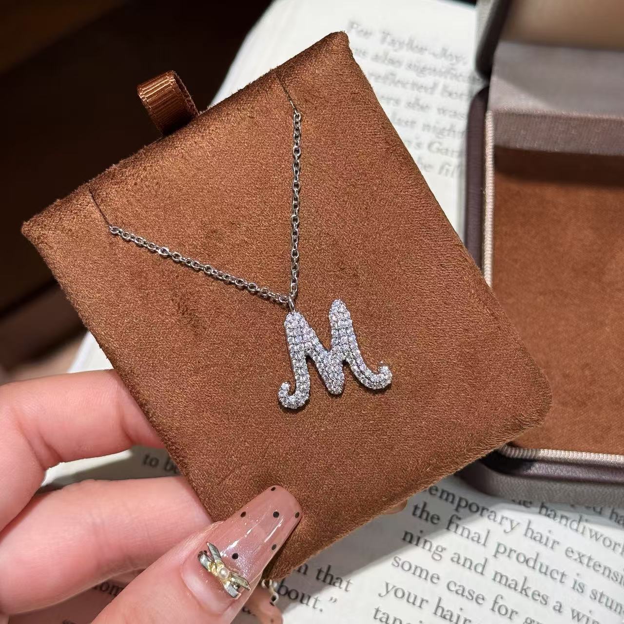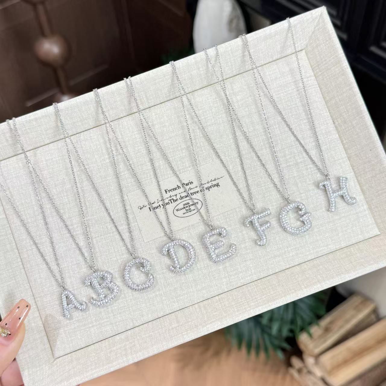 Original full diamond 26 letter necklace 2025 new light luxury fashion exquisite niche design clavicle chain jewelry