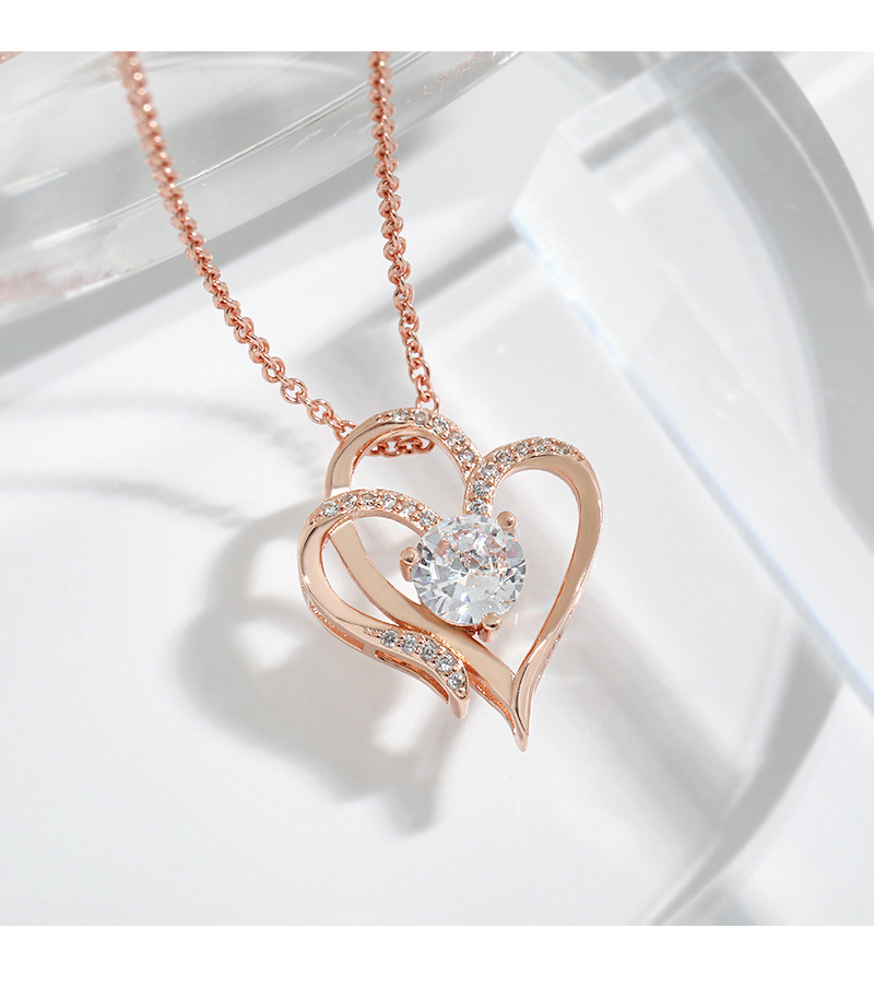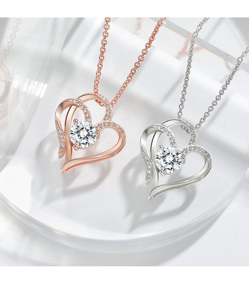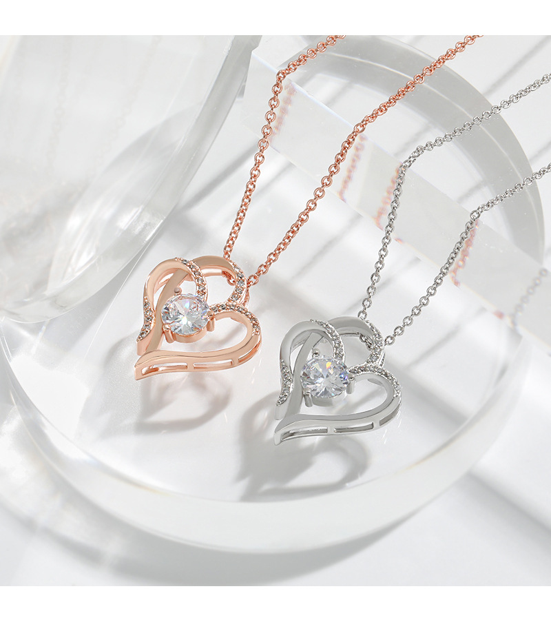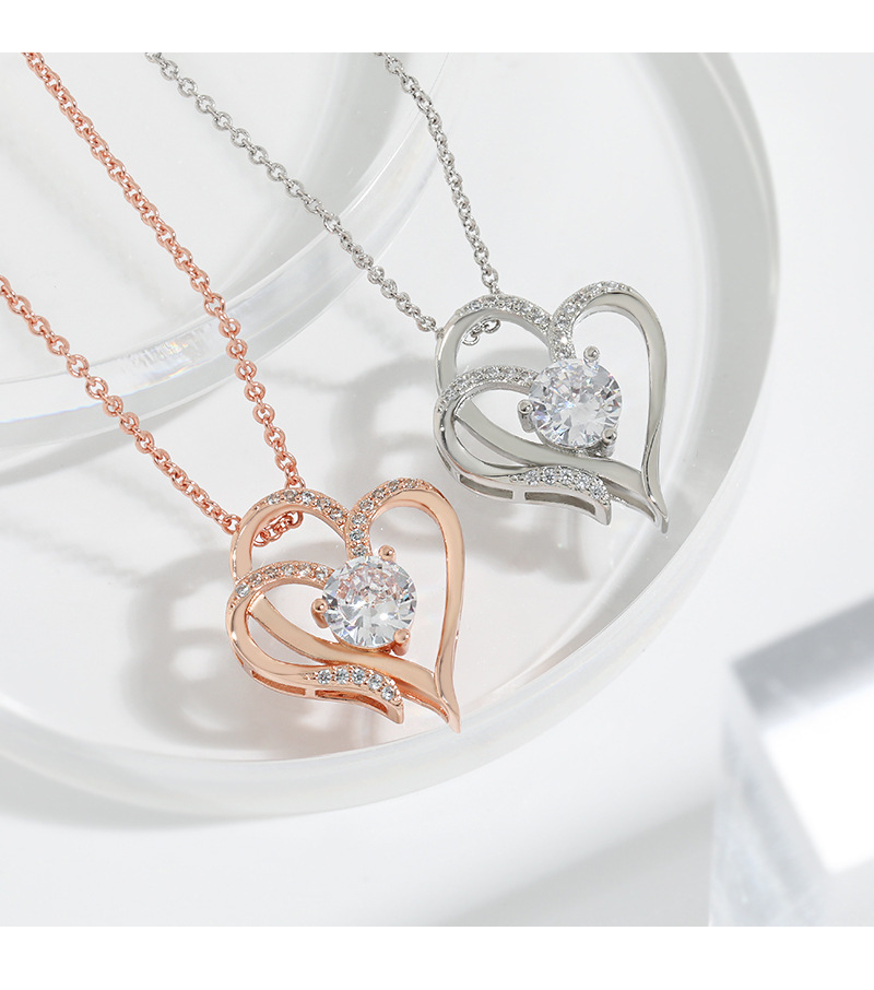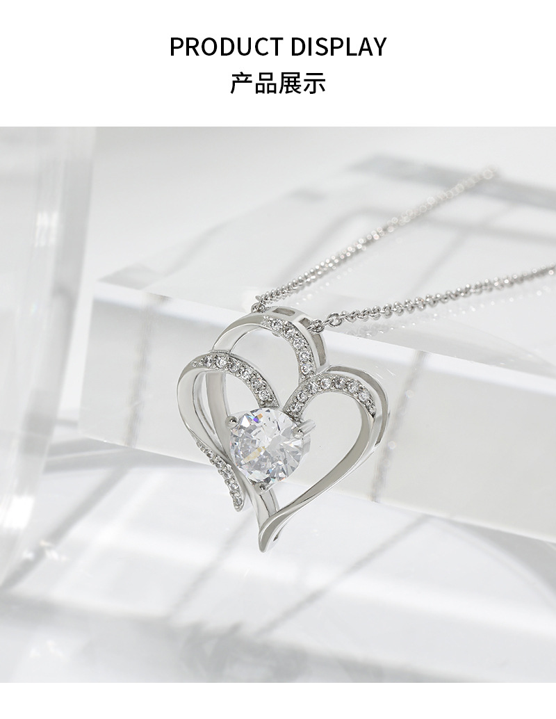 Platinum double heart pendant necklace for women, heart-to-heart, elegant, high-end, zircon love necklace