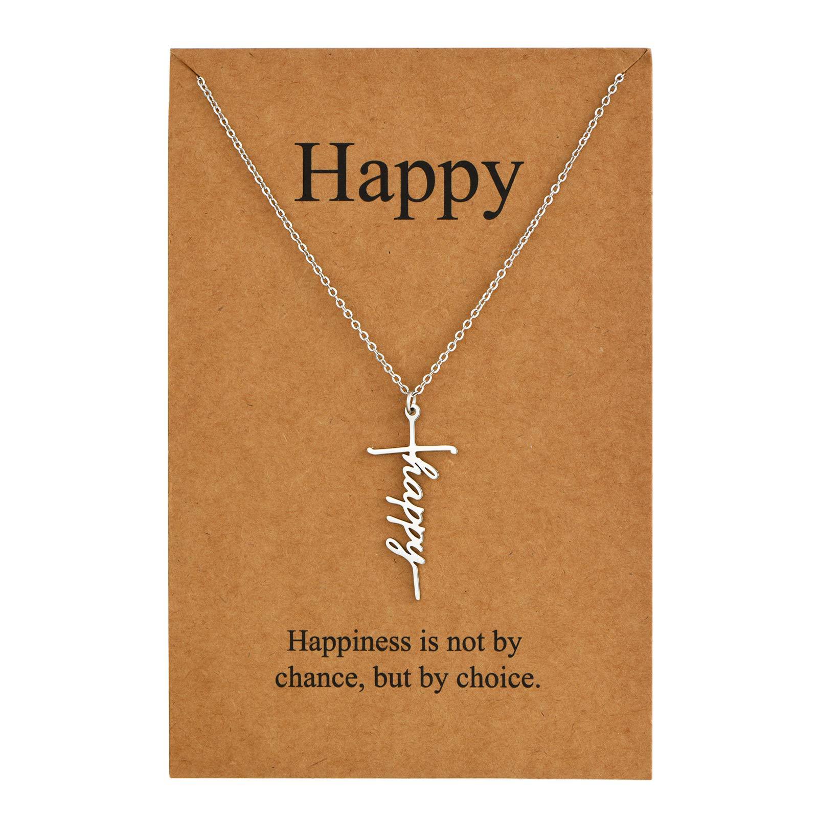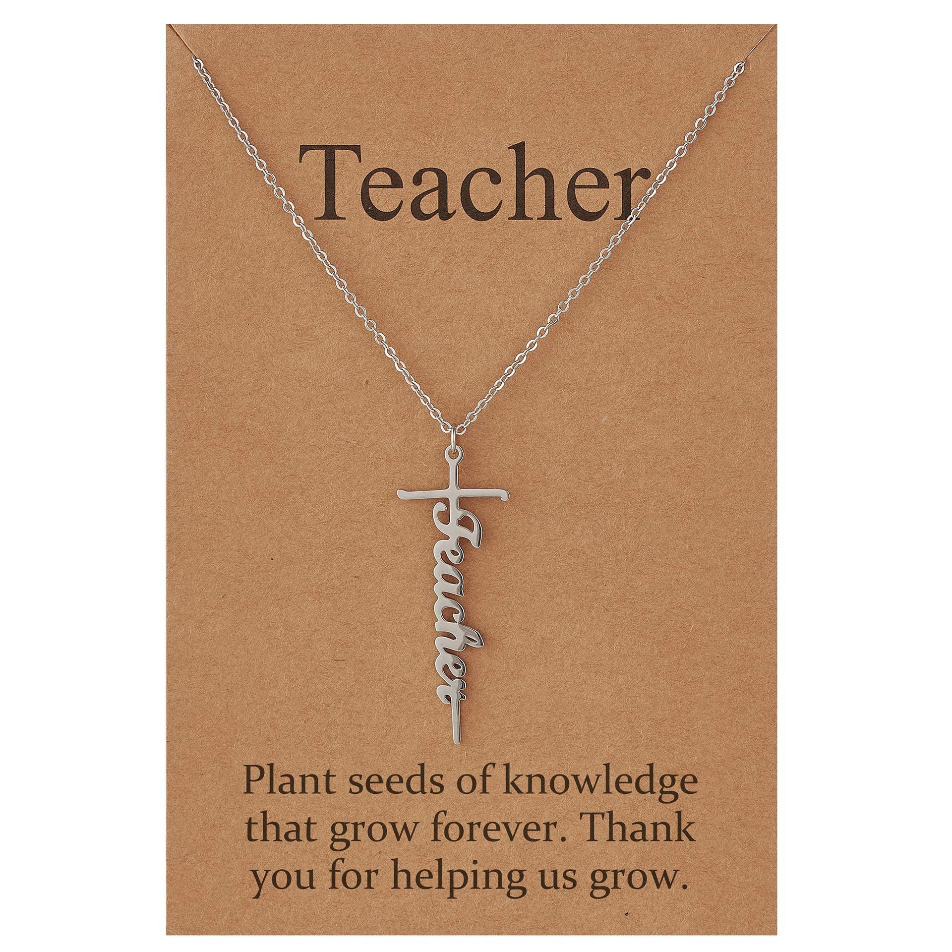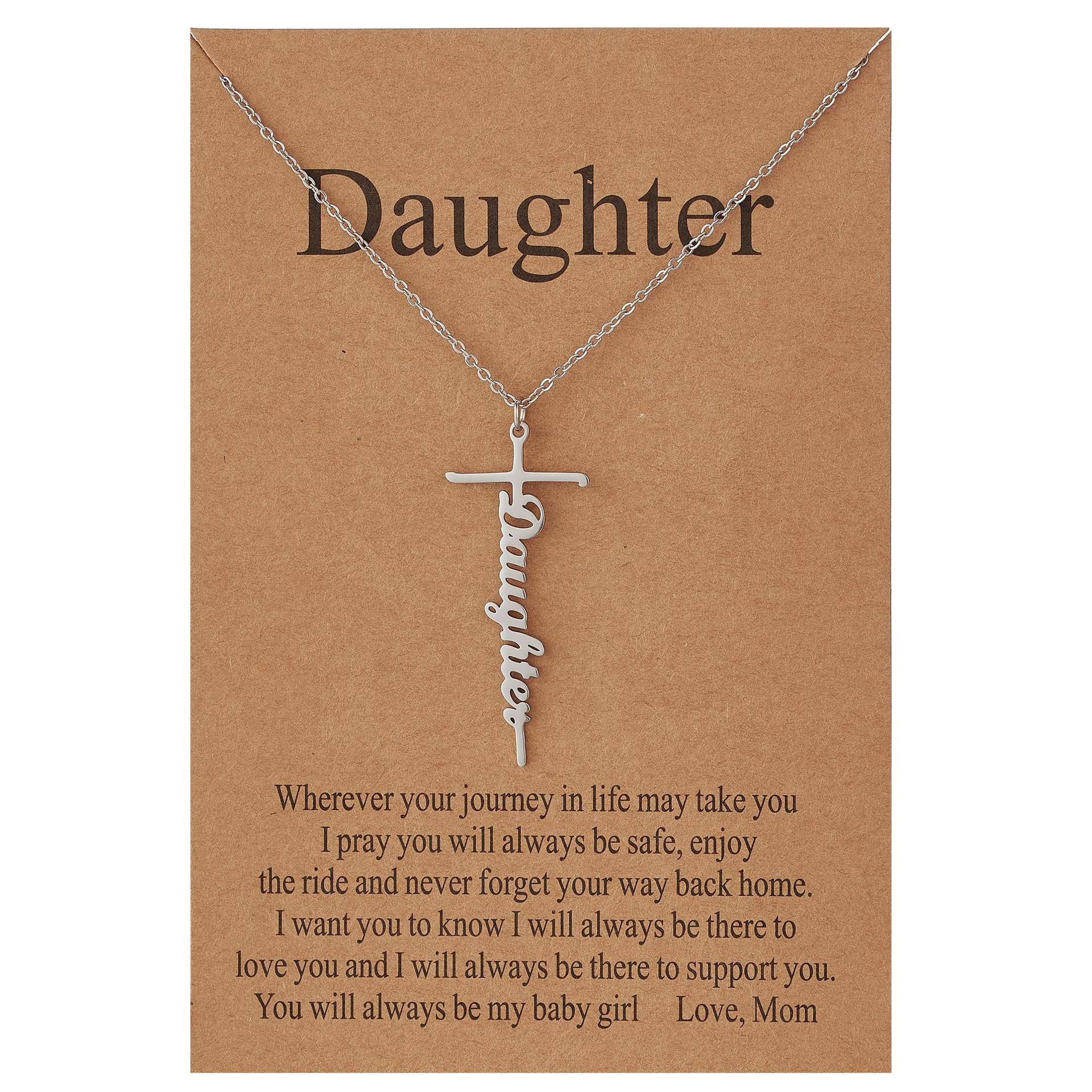 Women's Cross Necklace Steel Color teacher Gift Holiday Necklace Stainless Steel Name Carved Cross Necklace